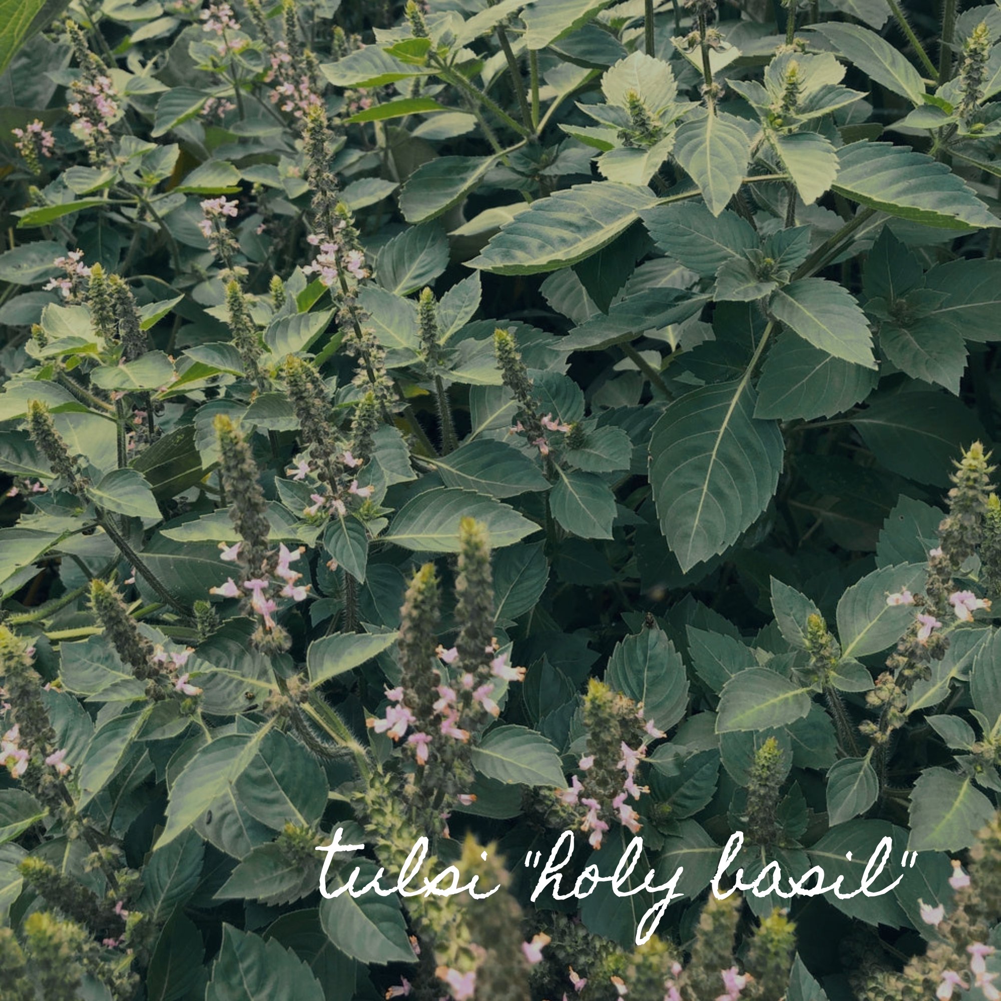 ~Rama Tulsi is a species of holy basil native to India and other parts of Southeast Asia. In Indian folk traditions Tulsi is one of the most spiritually sacred plants, and in Ayurvedic medicine is seen as a rejuvinator or tonic herb that nourishes general health. It is adaptogenic in that it helps the body regulate to stressors and builds resiliency. Tulsi also positively addresses nervous system issues and promotes relaxation, as well as being uplifting to the mood.