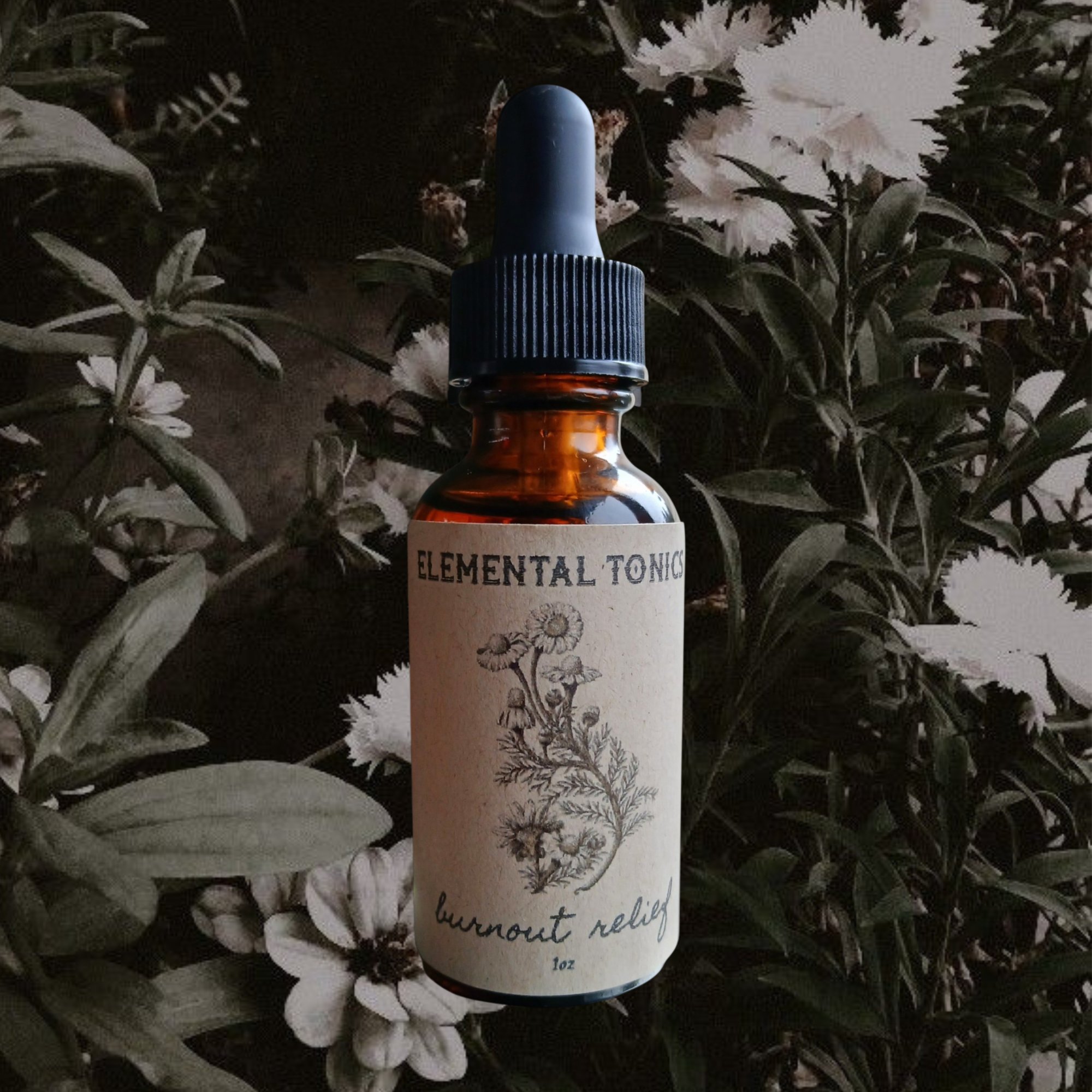 Burnout relief can be used interchangeably as both an adopgenic tonic helping to build resistance to stress, or as a relaxant nervine to reduce tension, anxiousness, or irritability during the day or night.