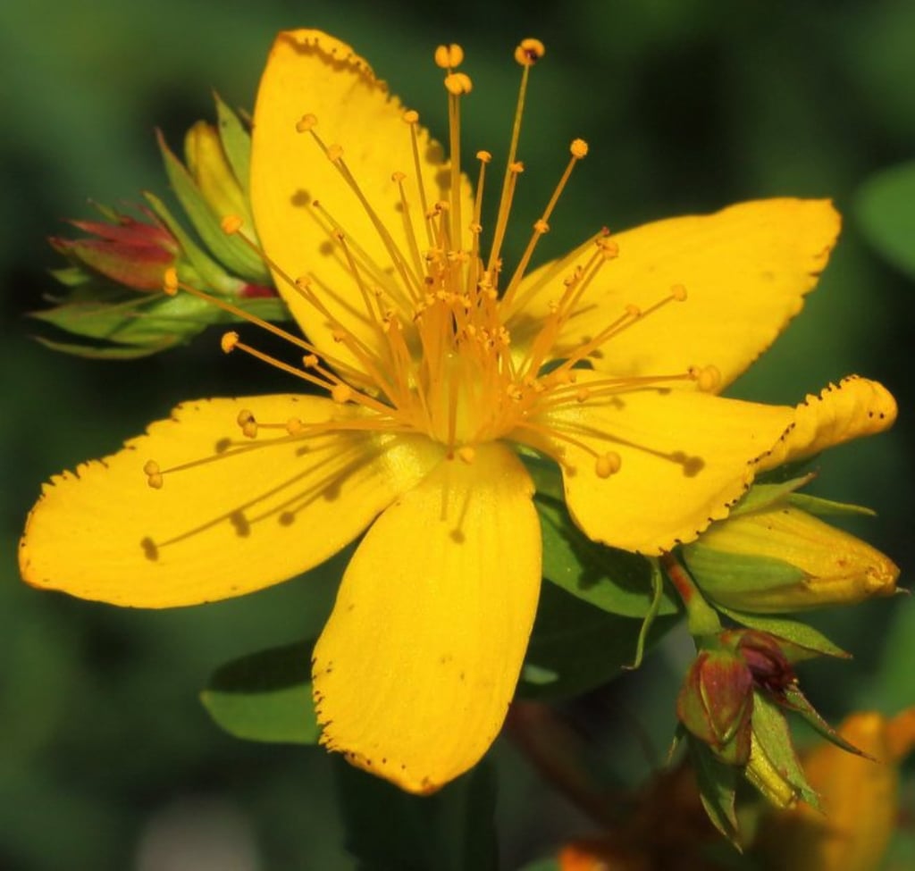 ~St. john's wort is native to North Africa, Western Asia and Europe although it has been naturalized to many parts of the world. Revered in many spiritual traditions as the embodied form of light and dispeller of darkness. In Greecian times it was one of the principle plants used for protection. Medicinally, st john's wort has a strong affinity to the nervous system. It is one of the few plants that relieves nerve trauma, pain, and damaged nerve tissue. St johns wort relaxes the nervous system and is most commonly known for it's mood elevating properties, promoting mental well-being, and reducing emotional distress. As an immune system tonic it has antibacterial and antiviral properties it can be helpful for the flu and coughs. St johns also has a powerful affinity to the liver and detox pathways making it a useful tonic. Be cautious when taking prescription medications as st johns uses the same metabolic pathways in the liver that most medications are processed.