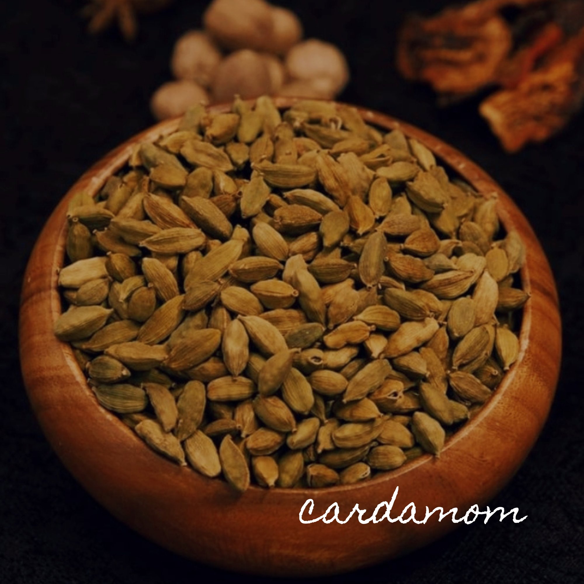 ~Cardamom is native to India and Indonesia and used in traditional culinary and medicine traditions to aid digestion such as gas, bloating, and naseau. Cardamom also reduces inflammation, is antibacterial, improves lung and cardiovascular health, and used for gum disease.